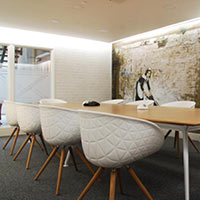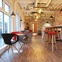 Real emphasis was placed on bringing some luxury into the work environment. The café area in particular is one of my favourites. Comfortable soft seating, Italian breakout dining chairs, solid wood poseur height tables with funky stools all add to the overall calming ambience. A great place to unwind with a coffee or during a lunch break. The cafe area also doubles up for informal meetings and discussions. The open plan office space benefits from acoustic quiet booths for those moments where deep concentration is required and there are a number of more formal meeting spaces. There is even a dedicated games room with a pool table, football table and darts.