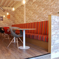 We already had some ideas about what we wanted to create in terms of ambience and character inside the building and had put together mood boards and sample boards of examples of furniture and decor. However, it was Nicola who turned these ideas into reality with her determination to find the right pieces of furniture which would fit both our scheme and budget. Although our ideas and budget changed regularly, Heatons were able to keep us focussed and helped us to narrow down our choices until we were sure that everything was just as we wanted. It was obvious that Nicola knew her suppliers and their product ranges extremely well and was able to show us examples very quickly when we asked to see yet another type of poseur table or conference chair! We even visited Camira fabrics in Dewsbury in order to see what was available for all the soft seating including the banquette in the café area. They approached skilled tradesmen in order to get us prices for bespoke pieces of furniture when it became apparent that we could not buy certain items “off the shelf”, and we felt that she was as enthusiastic and passionate about completing the project to the high standard we hoped to achieve.