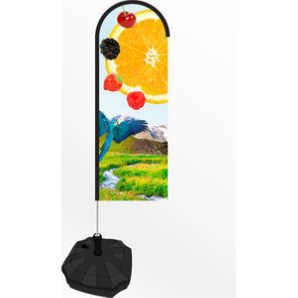 Strong Feather Flag System with Durable Aluminium Metal Click Frame Making It Simple & Easy to Assemble. Lightweight for Indoor & Outdoor Use. Heavy Duty Elasticated Sleeve Excellent Print Quality. Includes Aluminium Metal Pole Kit Single Sided Printed Flag (mirror Image on Reverse) & Water/Sand Base. Other Bases Are Available. Height: 200cm Print Size:60 x 160cm Printed Full Colour.