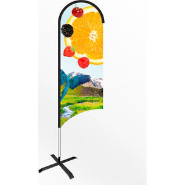 Strong Feather Flag System with Durable Aluminium Metal Click Frame Making It Simple & Easy to Assemble. Lightweight for Indoor & Outdoor Use. Heavy Duty Elasticated Sleeve Excellent Print Quality. Includes Aluminium Metal Pole Kit Single Sided Printed Flag (mirror Image on Reverse) & with Cross Base. Other Bases Are Available. Height: 400cm Print Size: 90cm x 360cm Printed Full Colour.