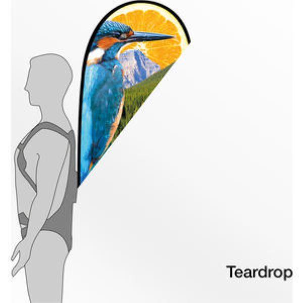 Great Way To Advertise Events And Promotions With This Cost Effective Display System. Includes Backpack Pole And a Teardrop Single Sided Flag (Mirror Image On Reverse). Minimum Quantity 1.