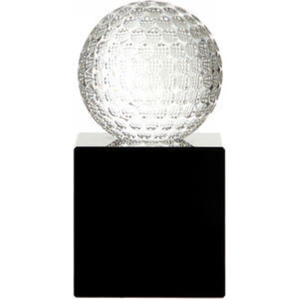 50mm optical crystal golf ball mounted onto a 50mm crystal cube, 95mm high supplied in a presentation carton. This award is fixed as the golf ball is glued to the cube. Ideal award for golf presentations.