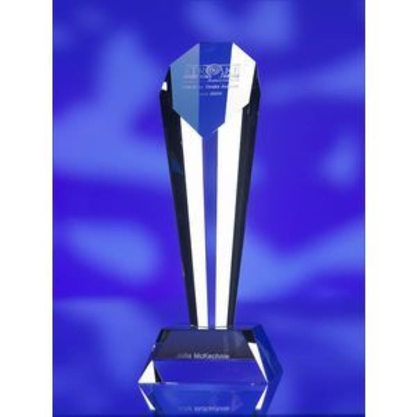 Stunning crystal award with attractively shaped top. This award will make any award ocassion extra special. The award may be engraved on the top and/or the base to your customer sepcification. Engraving charges will apply.