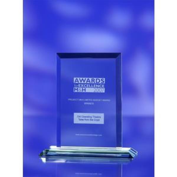 Attractive jade award. Rectangle shape with faceted edges on base. Award may be engraved to suit customer specification with logo/text. Engraving set up charges will apply.