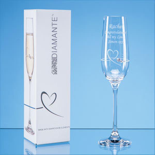 Single Diamante Petit Champagne Flute with Heart Design in an attractive Gift Box
