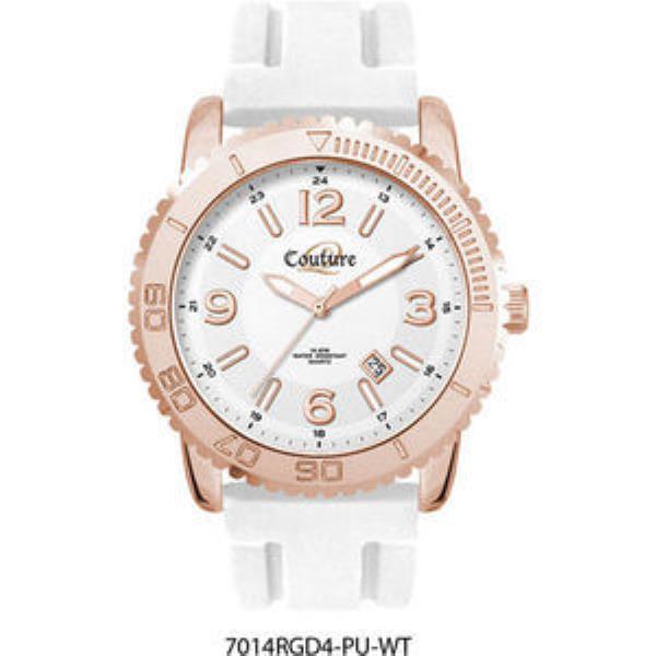 Ionic rose gold plated alloy case, silver sunray dial with white luminous printed on rose gold raised ND indexes, white silicon rubber strap