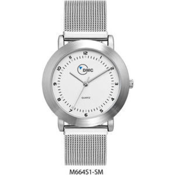 Alloy case, matt silver dial with black printed indexes, S/S mesh band
