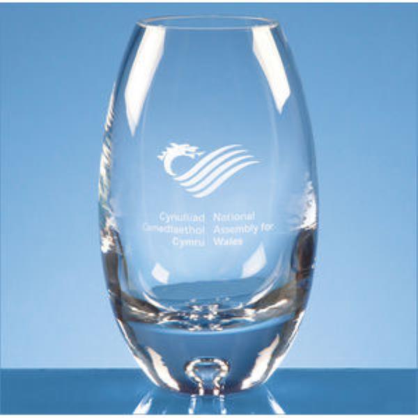 The handmade barrel vase has a bubble base and is a contemporary style. It is an ideal gift that can be personalised with any logo, crest or wording and is sure to be treasured by the recipient and displayed with pride. Print method offered on the product is Decal(Low Fire Colour Printing), Sandblast Engraving. Also available High Fire Colour Printing, Colour Infill print method contact us for details.