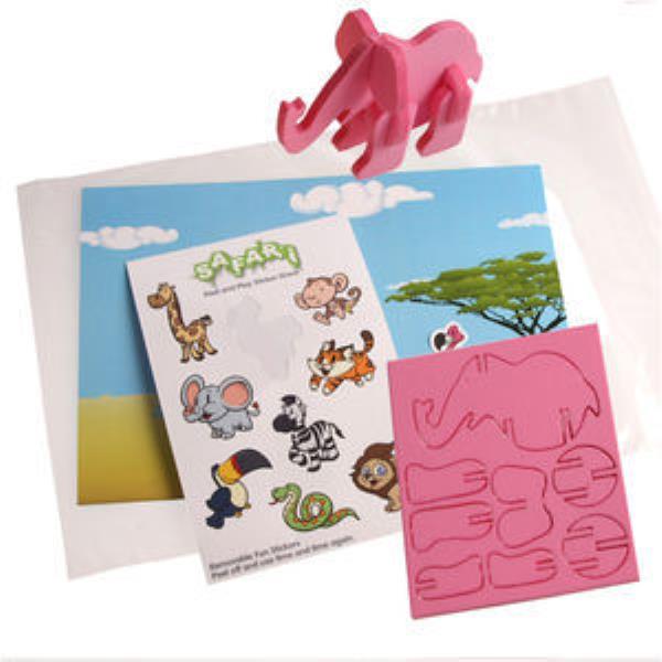 Goody Bag containing repositional vinyl sticker sheet card scene and foam animal puzzle.The sticker scene is 210 x 148mm and is personalised full colour on the reverse.Choose from Dinosaurs Farm or Zoo Animal Scenes.