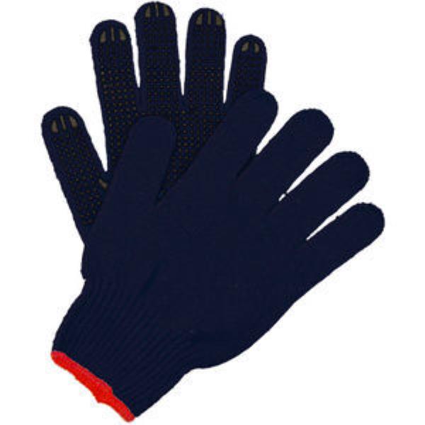 Cotton one size gloves with rubber grip zones and elasticated wrists.