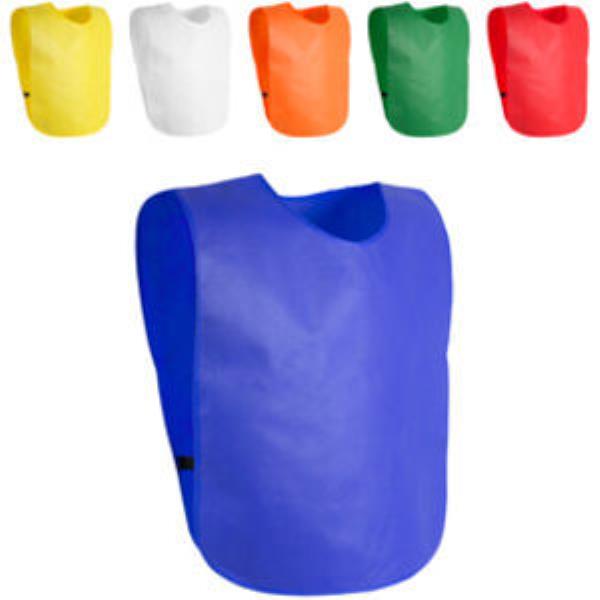 Colourful adults sports vest made from non-woven material. One size.