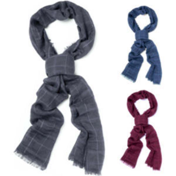 Cotton/polyster mix fashion scarf. Stylish plaid design and fringed edges. Unisex. Choose from three fashionable colours. Perfect for keeping warm and cosy in winter.
