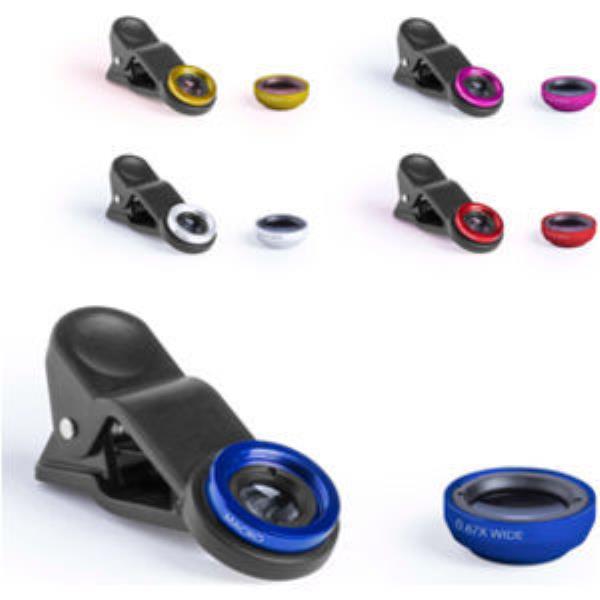 Set of two clip on camera lenses suitable for smartphones, iPhones and tablets. Includes a Macro lense and a wide angle lense and supplied in a drawstring storage pouch. Simply clip onto your device, ensuring the lense covers your camera and then take photos as normal to achieve a variety of photographic effects. Print area of clip 18x8