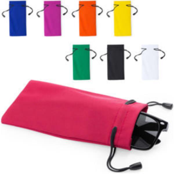 Glasses pouch with drawstring closure.
