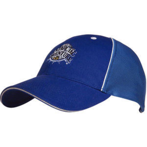 Brushed chino twill with high tech mesh baseball cap. Structured 6 panel, low profile, pre-curved peak, fabric covered short touch strap.