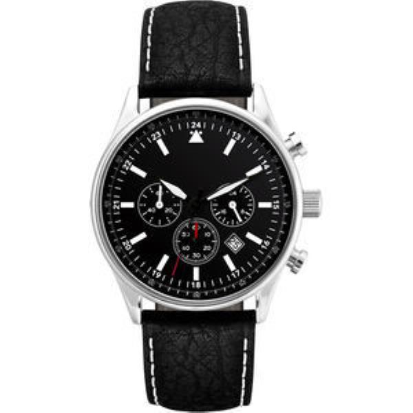 Gents chronograph watch with leather strap and dome lens