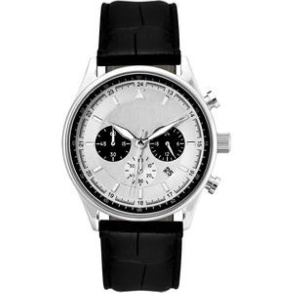 White Luminous Printed Indexes, Matte Black Dial, Padded Black Buffalo Grain Italian Leather Strap w/White Stitching.