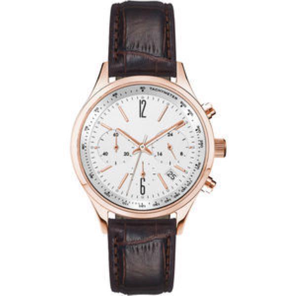 Rose Gold Plated Case. Rose Gold Raised ND and Black Printed Indexes, Matte Silver Dial. Padded 13 Croco Back Grain Italian Leather Strap.