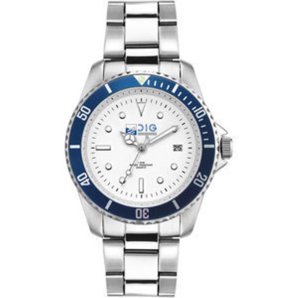 White Luminous Printed on Silver Embossed Indexes, White Dial, Folded S/S Band, with Date