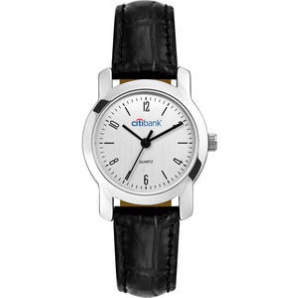 Black Printed Indexes, Silver Brushed Dial, Padded Black PU Leatherette Strap w/Croco Back Pattern