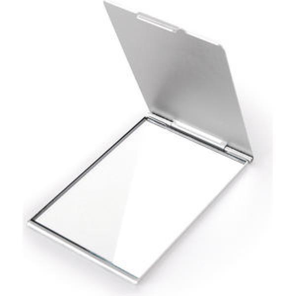 Slimline metal foldable mirror in a sleek design. Ideal size to fit into a handbag or makeup bag.