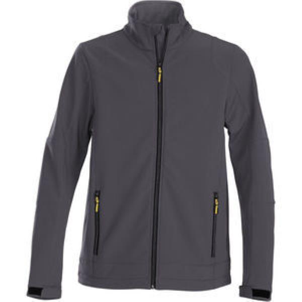 Soft shell jacket in bounded fabric with stretch capabilities. Two coloured zipper at front and pockets, with zip protection at collar. Adjustable sleeves with Velcro and drawstring at bottom hem. Additional coloured zipper pulls are available. Available in sizes S-5XL. Contact us for more details.