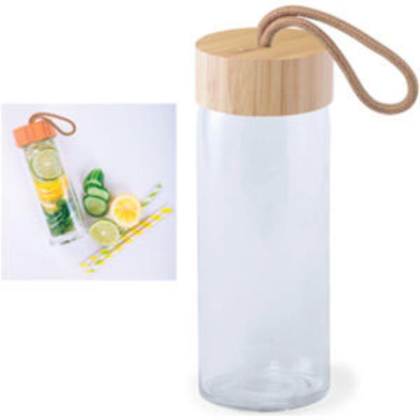 Nature line, 420ml capacity jar. In combination of a glass body material and screwon bamboo lid, with carrying handle in natural colour. Presented in an individual, design box.