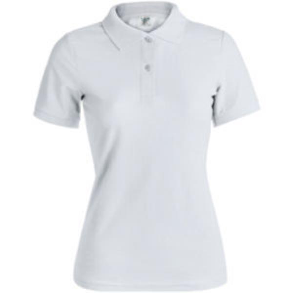 WPS180 Keya, pique polo shirt for woman in 100% cotton material of 180g/m2. With two matching colour buttons and available in white colour. Sizes S, M, L, XL, XXL.