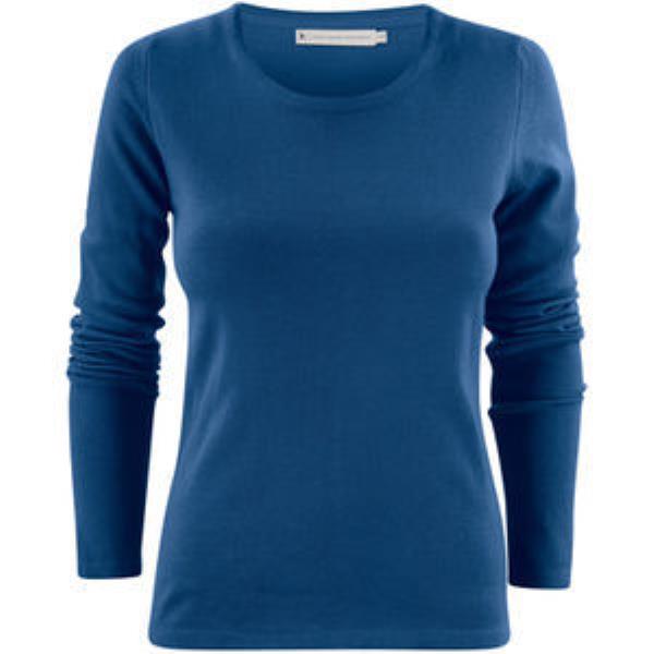 Crew neck knitted sweater for women. 1 x 1 rib at neck, bottom and sleeves. -Fabric: 50% cotton, 50% acrylic (Dralon), 12 gg -Gender: Women -Weight: 255 g/m2