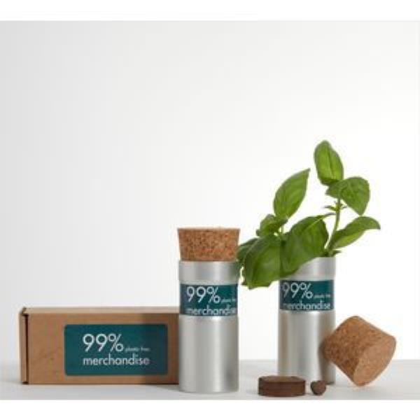 Specially blended flower seed mix for growing in an urban space. Recycled brushed aluminium desktop garden pot comes complete with innovative seedball that will germinate in around 7-14 days. Complete with cork stopper, growing instructions and organic soil coin with full colour label, laser engraving or rotary screen to maximise your logo or message. Available in silver brushed or matt black finish.