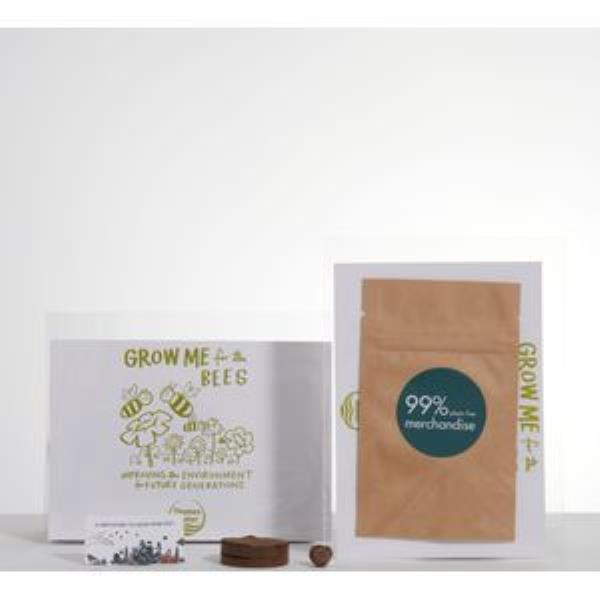 Grow white scented flowers on your desk. Biodegradable kraft growing pouch, full size postcard printed both sides with your logo and message, organic soil coins and instructions. Presented in a clear compostable bag and sealed with a full colour label. Perfect for your customers to take pics of and start sharing the Buzz about your or launch?