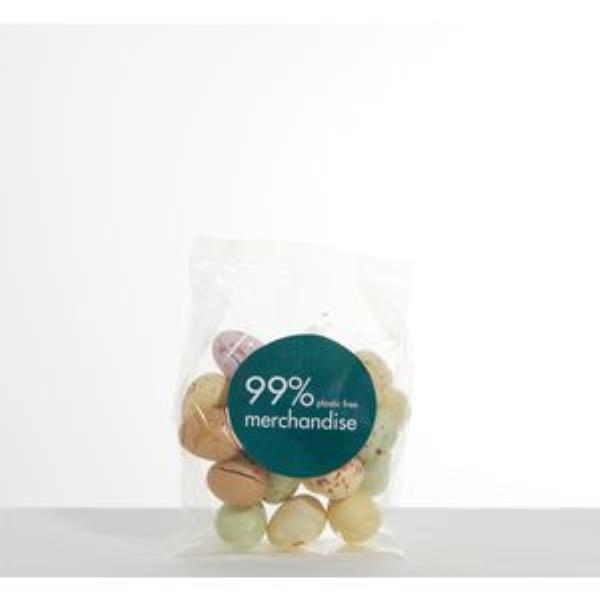 Why just keep them for Easter? Chocolate Mini Eggs are a treat at any time of year. A large 50g fill in branded compostable/dissolvable sugar cane bag with full colour digital label to create a fun and ethical giveaway.