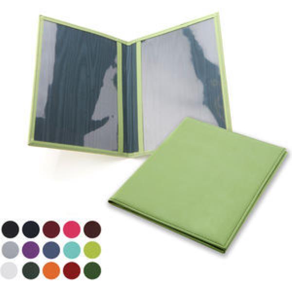 A5 Presenter or Menu Holdermade to order in the UKfinished in soft touch Belluno PU with a real leather look and feel. Belluno is available in a choice of 17 colours each with a unique colour change when embossedmaking your branding distinctive and accurate even on fine detail. Made to order in the UK. Product features include Lightly padded and stitched for a quality finishClear framed window to hold a5 information or picturesChoose from coordinating or contrasting edge stitching.