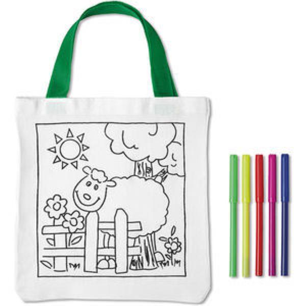 Cotton tote bag with 5 colouring pens. 200 grams/meter Square. Material: Mixed.