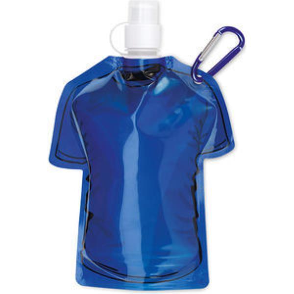 Foldable water bottle in T-shirt shape with carabiner. Capacity 480 ml. Material: Plastic.