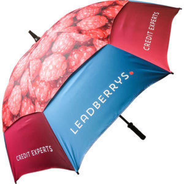 Strong and reliable Spectrum frame with vented canopy Stormproof steel ribs and vented canopy for increased flexibility and stability in windy conditions, 11 interchangeable spike, stem, handle and tip cup colour options at no extra cost, black rubber coated pistol grip handle as standard