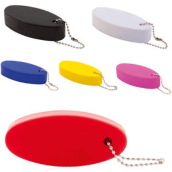 Floating oval keyring on a looped chain.