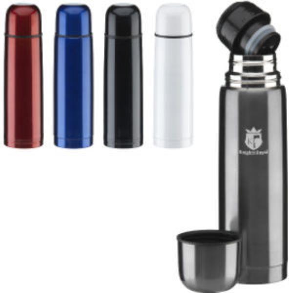 Durable coloured stainless steel vacuum flask.