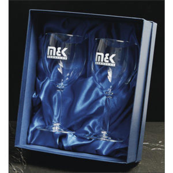Pair of budget red wine glasses supplied in a Satin lined box. Perfect gift for special occasions