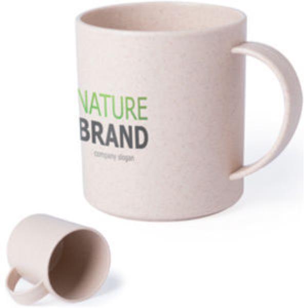 Nature line mug in natrual bamboo fibers and PP material. 350ml capacity. Biodegradable.