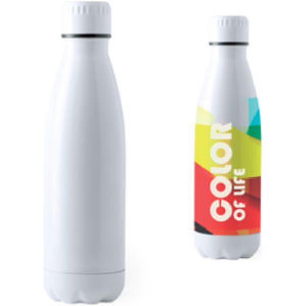 500ml capacity bottle with body in stainless steel. White Matt colour, with safety lid. Presented in an individual, attractive, design box.