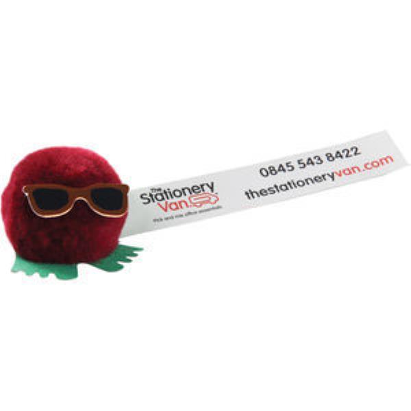 Original Advertising Logobug with cool Sunglasses - printed with your promotional message in Full Colour on Ribbon. Collectable give-away for any marketing campaign. Choose from a large variety of Pom and Feet Colours to suit your branding.