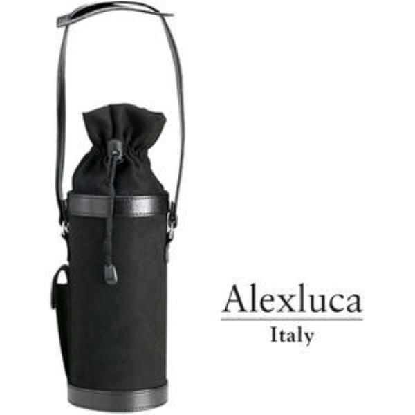 Suede effect bottle holder with carrying handle, pocket and toggle fastener.