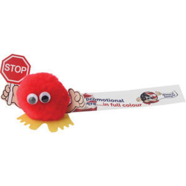 Original Advertising Logobug with holding a Stopsign with your promotional message printed in Full Colour on Ribbon. Part of our extensive Hand Holder Logobug Range - makes an ideal give-away for a Road Safety Campaign or School Education Promotion. Choose from a large selection of Pom and Feet Colours to suit your Branding.