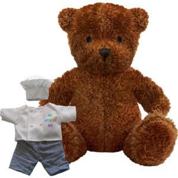PRINTED PROMOTIONAL SOFT TOY JAMES I TEDDY BEAR with Chef Outfit. Branded to Your Specification & Personalised in Full Colour. James I Plush Toy Bear, Suitable for All Ages, Machine Embroidered Facial Features, White Hat & Jacket, Gingham Trousers, Seated Height 17cm Approx, Brown Colour Fur - Available in 3 Colours. Minimum Quantity: 10.