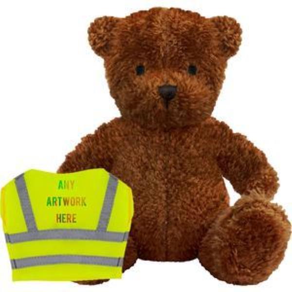 PRINTED PROMOTIONAL SOFT TOY JAMES I TEDDY BEAR with Hi-vis Vest. Branded to Your Specification & Personalised in Full Colour. James I Plush Toy Bear, Suitable for All Ages, Machine Embroidered Facial Features, Yellow with Silver Reflective Stripe, Seated Height 17cm Approx, Brown Colour Fur - Available in 3 Colours. Minimum Quantity: 10.