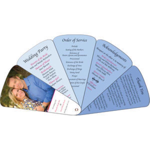 EXPNADABLE FAN (DIGITAL). Expandable 5-part hand fans. Multi piece fans that are ideal mementos for weddings and graduations. Can also be used as invitations and menus. Digitally printed in full colour on all front panels & back centre panel only. Fan is made of 22 pt. high density white paper board, film laminated both sides. The fan panels slide together for a one panel look for a more compact look and easier to store.