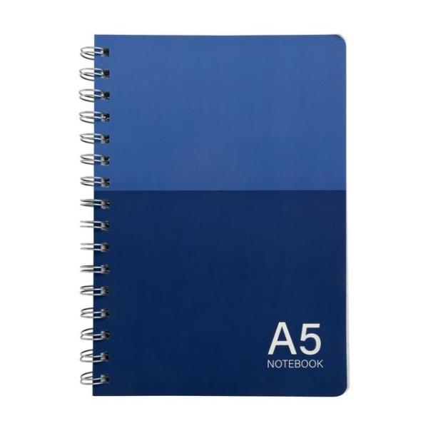 Versatile A5 wiro bound note pad supplied with 50 sheets of white 80gsm paper, grey board back and a 250gsm gloss art cover. Great for students or professionals to take notes at school or office meetings.