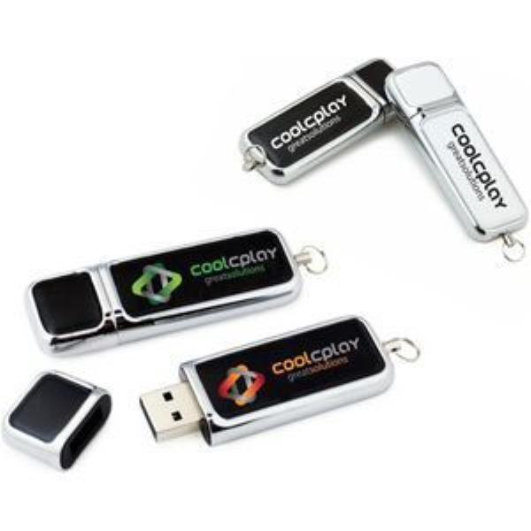 This 4 GB Metal Flashdrive with black or white leather detail features a removable metal cap. Available in black and white, this USB Flashdrive is perfect for students, professionals, and businesses. 2.55"" L x 0.86"" W x 0.35"" H