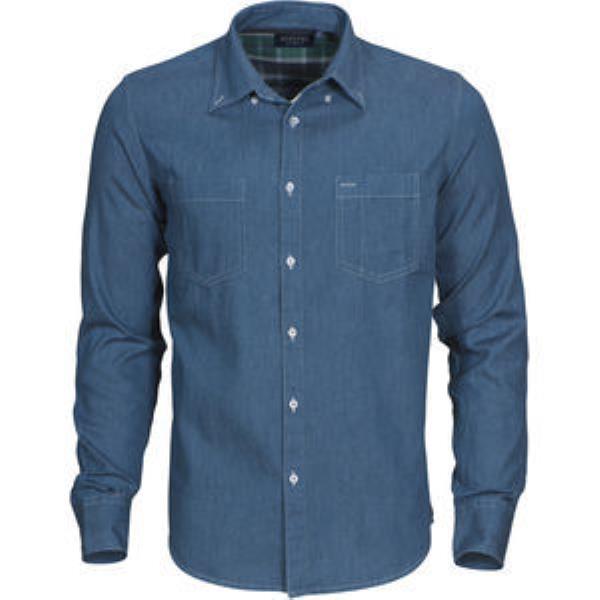 Denim look men's shirt. Button down collar, djustable sleeve cuffs. Chest pocket on both sides. -Fabric: 100% cotton. Denim look, 135 g/m2. -Gender: Men -Weight: 135g/m2
